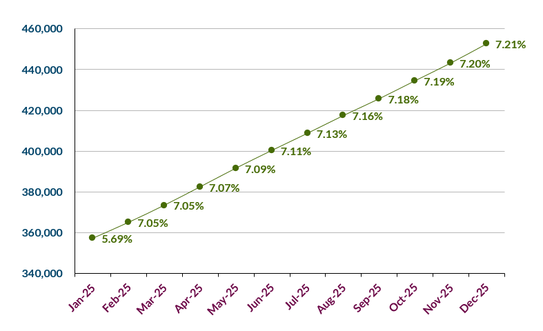 The graph shows the number of patients that have been flagged as potentially frail and have therefore been fast tracked to speak directly to a clinician who can provide personalised care; it shows the cumulative total (from the start of the project) and the percentage of potentially frail patients compared to the total number of matched patients (over the last 12 months).